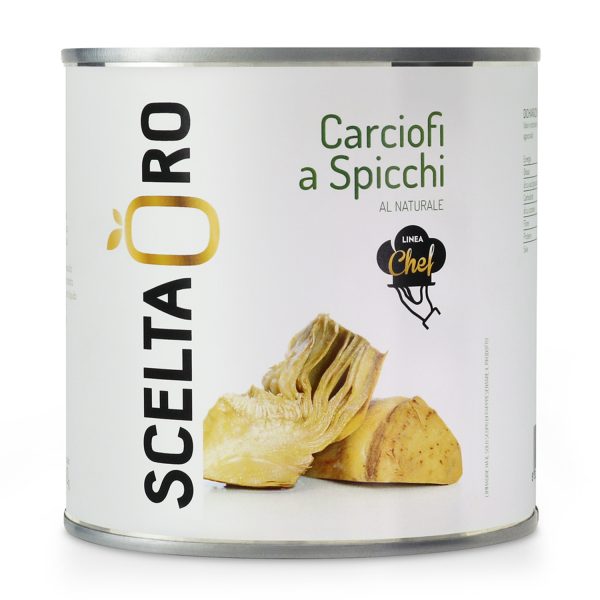 Carciofi tagliati a spicchi al naturale Scelta Oro Chef, una linea dedicata ai professionisti del settore.